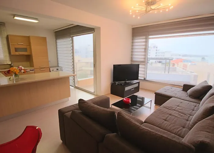 Das 2-Zimmer-Apartment Fig Tree Bay Apartments in Protaras stellt sowie Autos zur Miete sowie bietet eine Terrasse mit Blick aufs Mittelmeer. Thalassa Municipal Museum ist ebenso weniger als 15 Minuten Autofahrt vom Apartment entfernt gelegen.